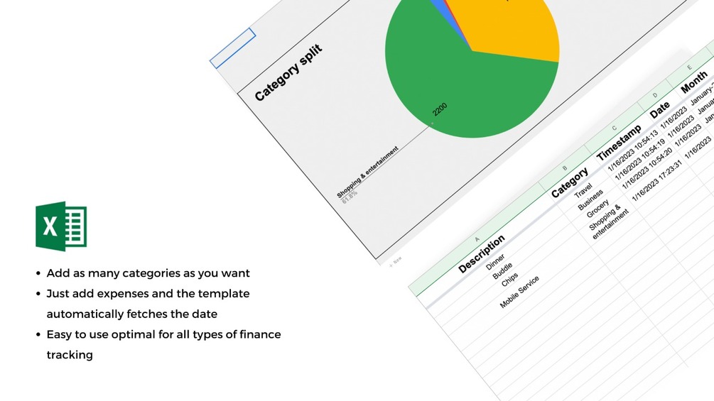 With just a few clicks, you can effortlessly record and categorize your expenses and visually see your monthly spending patterns.